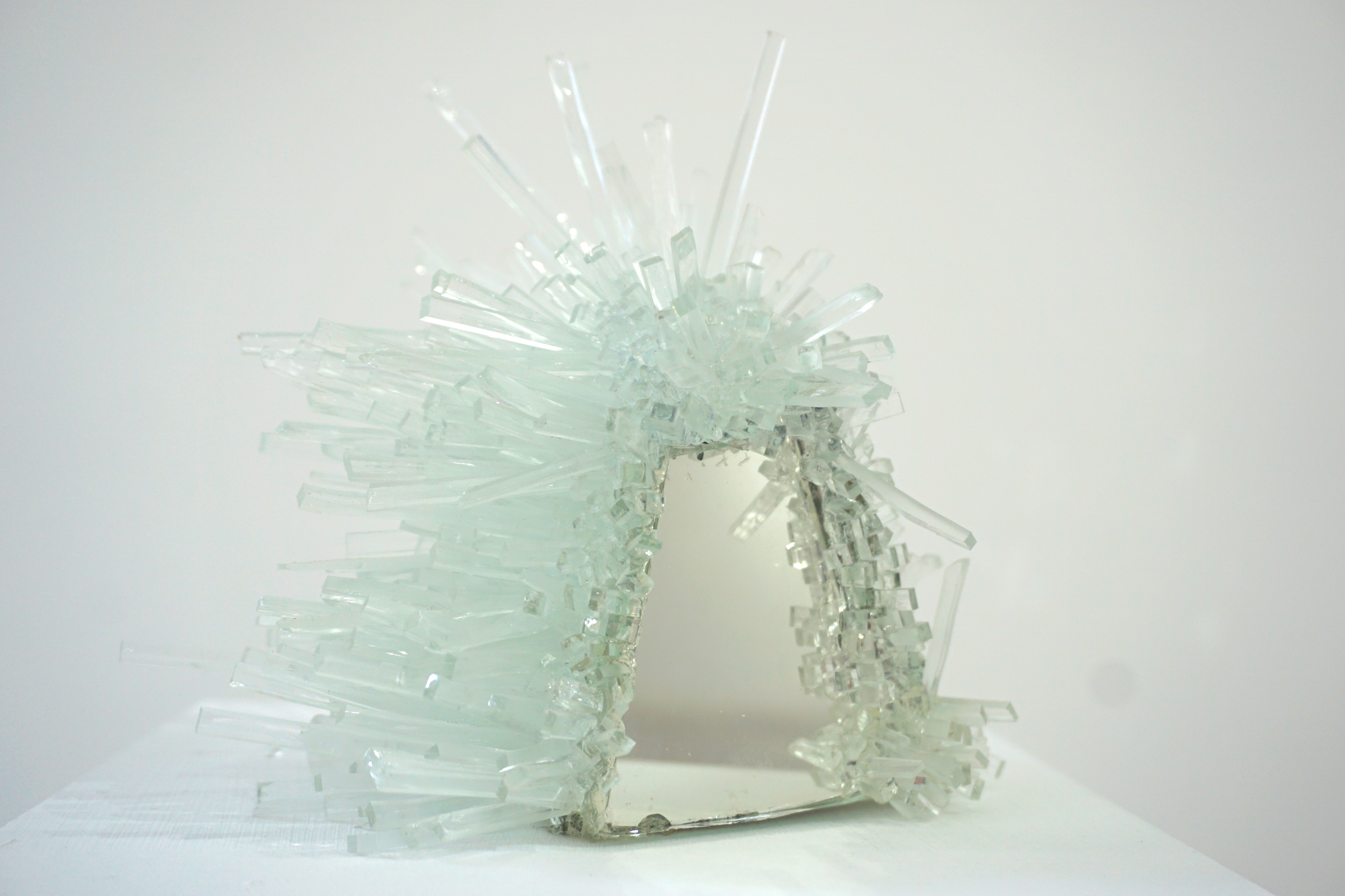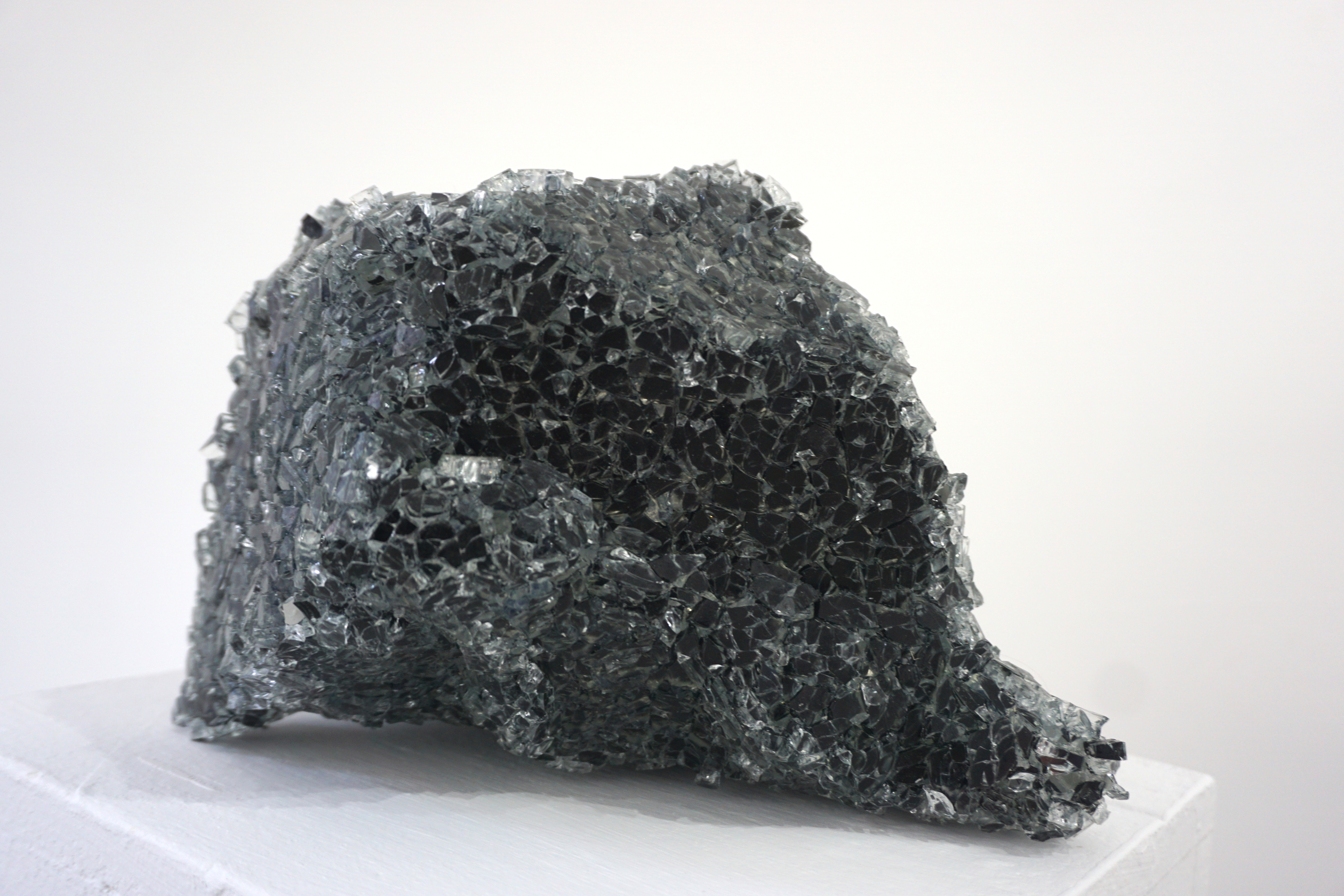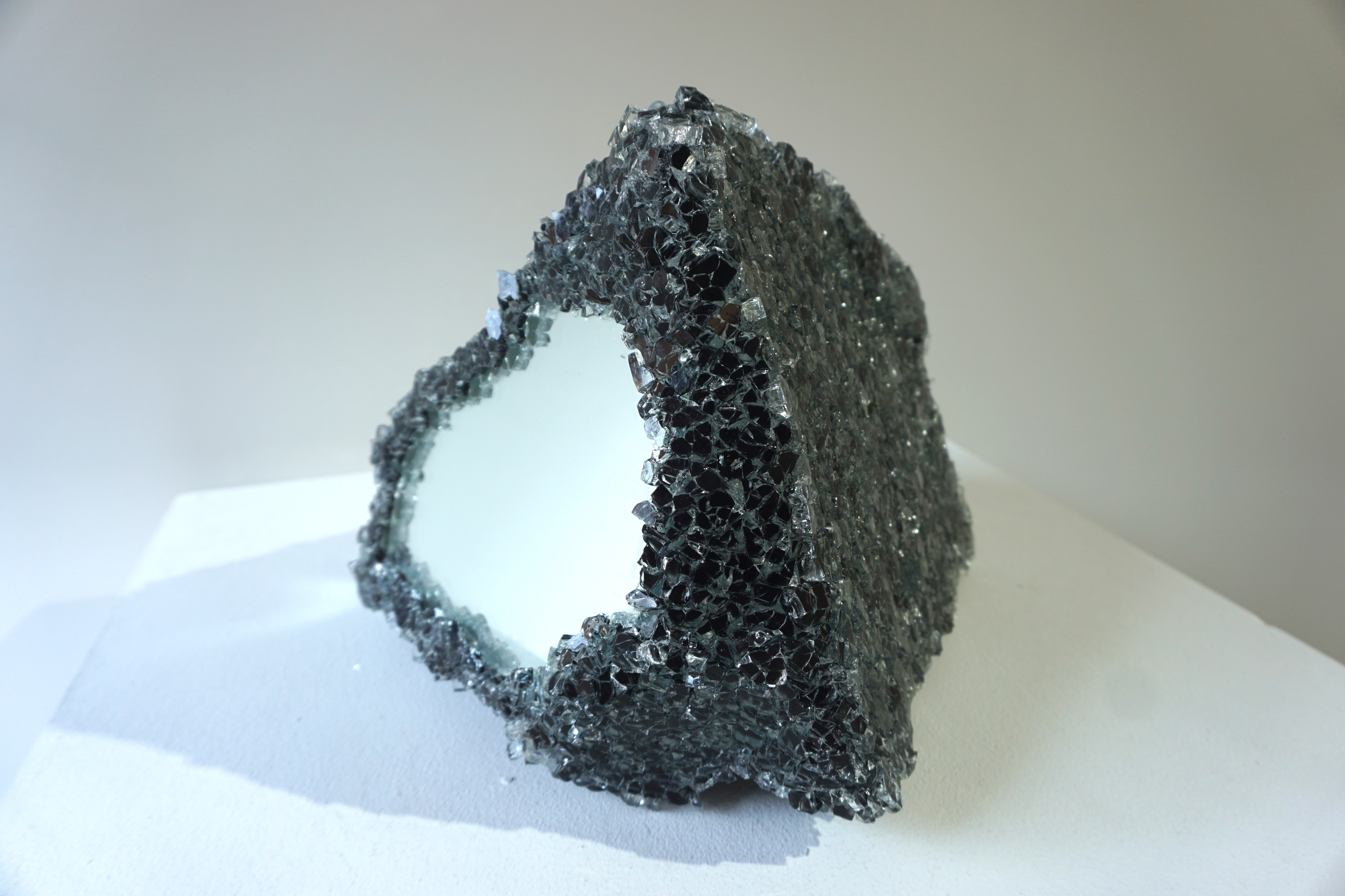 Impactite 3, verre et miroir, 50x40x40cm 2021