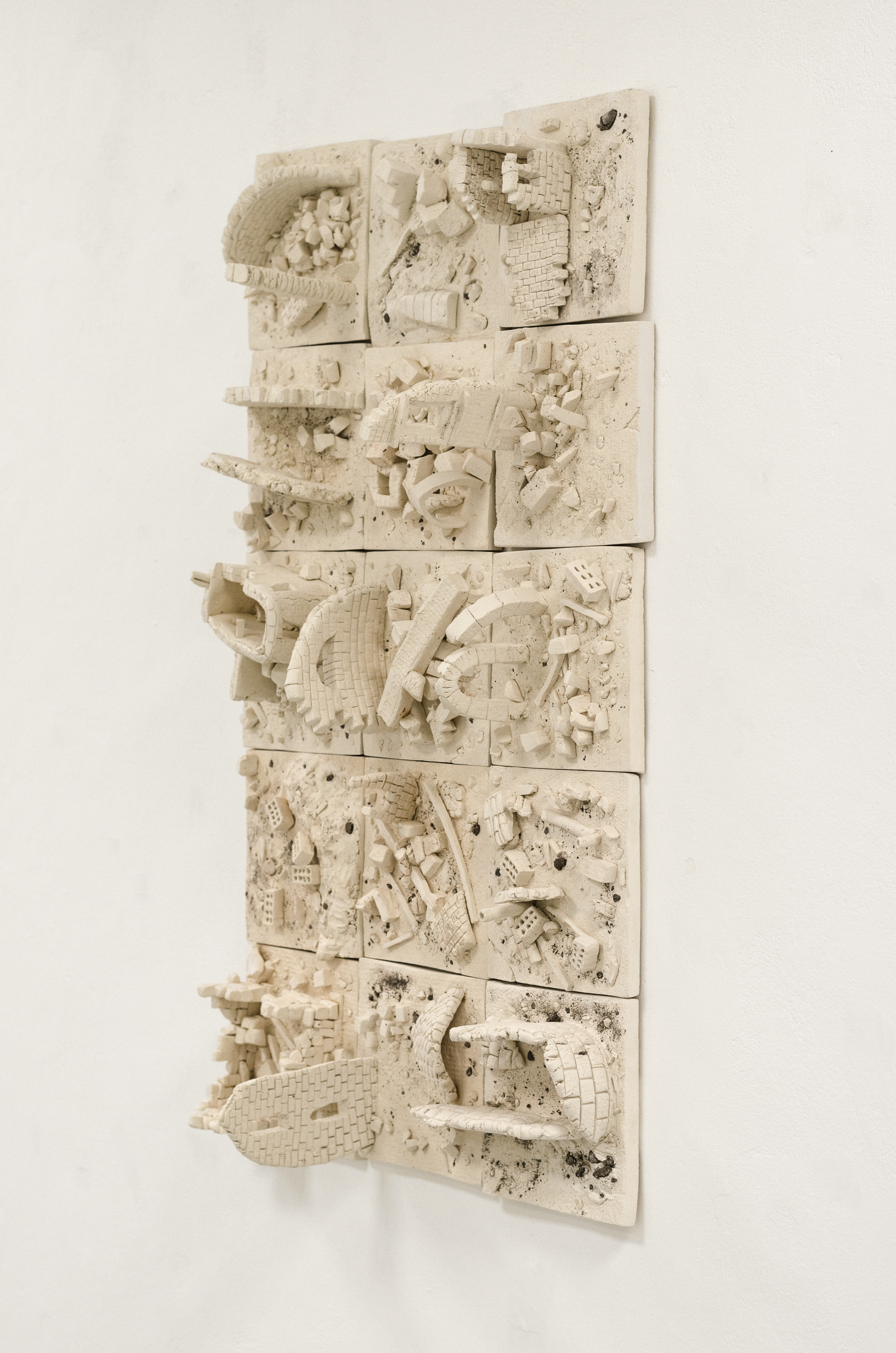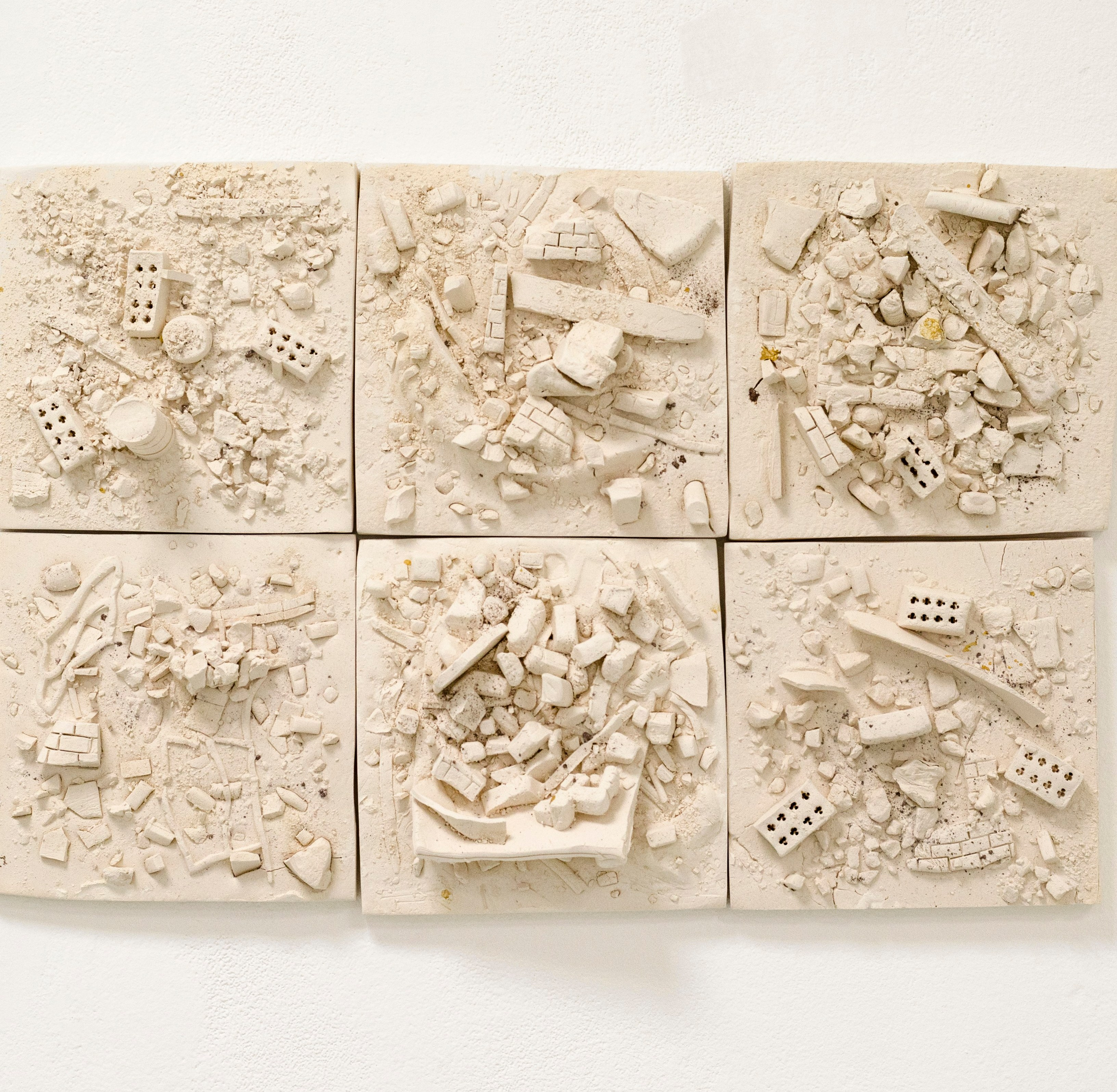 Vestiges, détails, 2017, manganèse et porcelaine, chaque élément: 10x10x10 cm