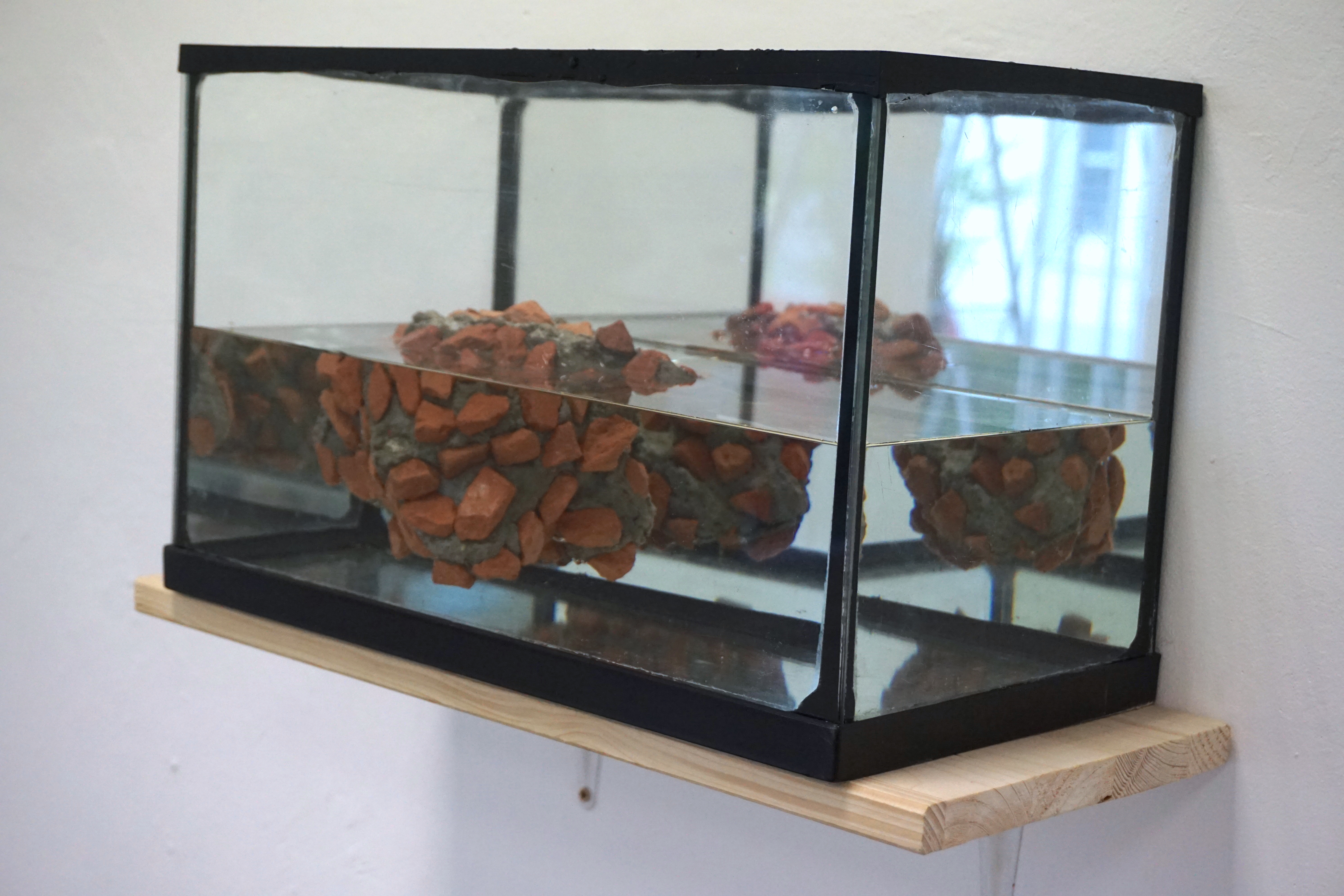 Plastiglomérat domestique, 2018, aquarium, eau, mortier, brique, 20×30 cm