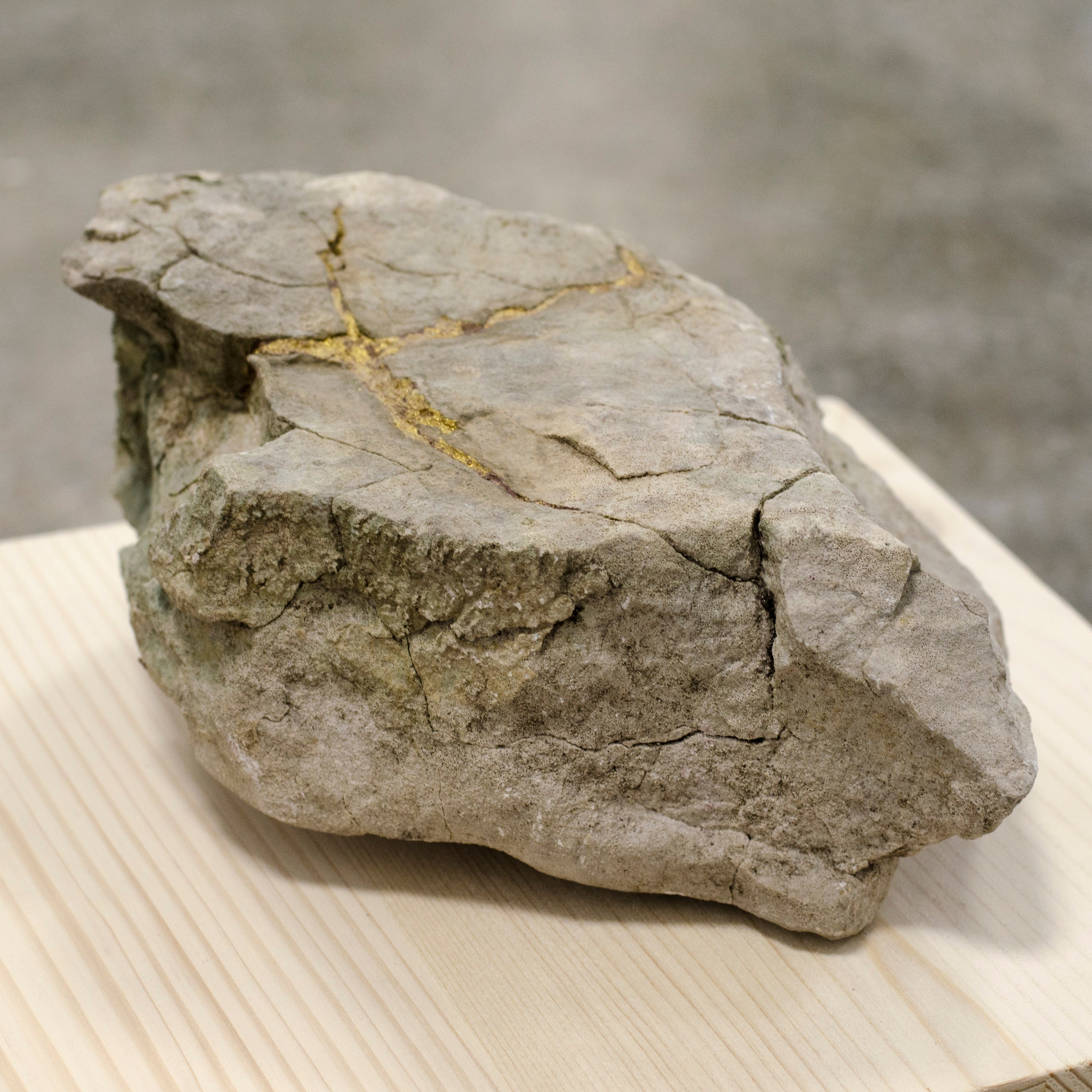 Kintsugi pour Mont-Ventoux, 2016, calcaire, urushi et poudre d’or, 30×30×35 cm